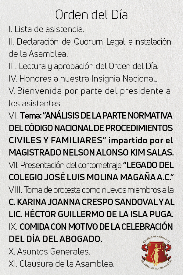 "Asamblea Ordinaria en conmemoración del día del abogado "